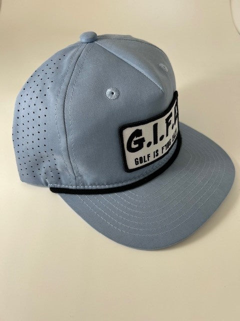 GIFE - Decky 5 Panel Perforated Performance Rope Hat - Sky Blue/Black "Gimme"