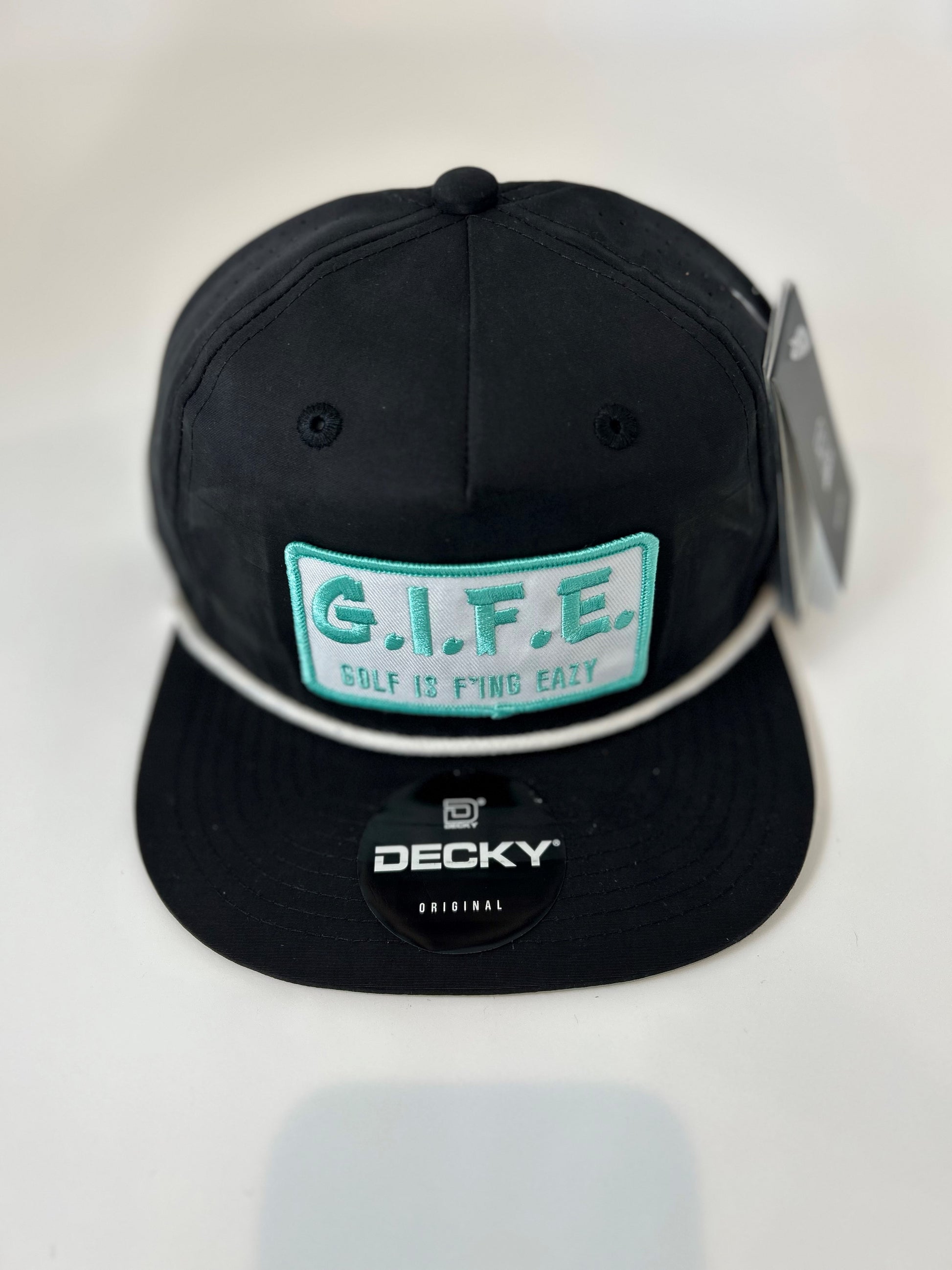GIFE - Decky 5 Panel Perforated Performance Rope Hat - Black/Turquoise "Albatross"